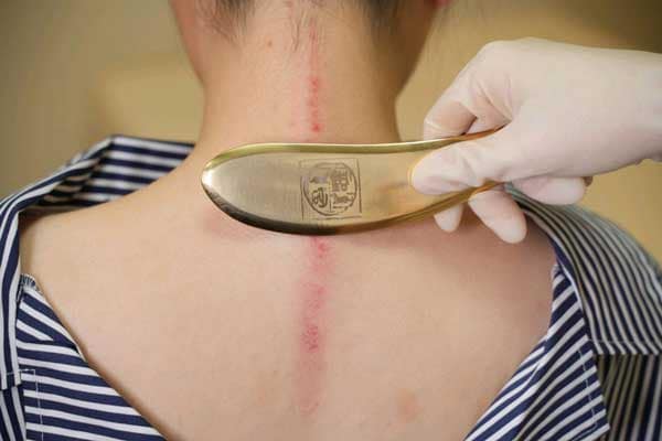 3️⃣ 刮痧:硬币蘸香油,从上往下刮30次(出痧即停)