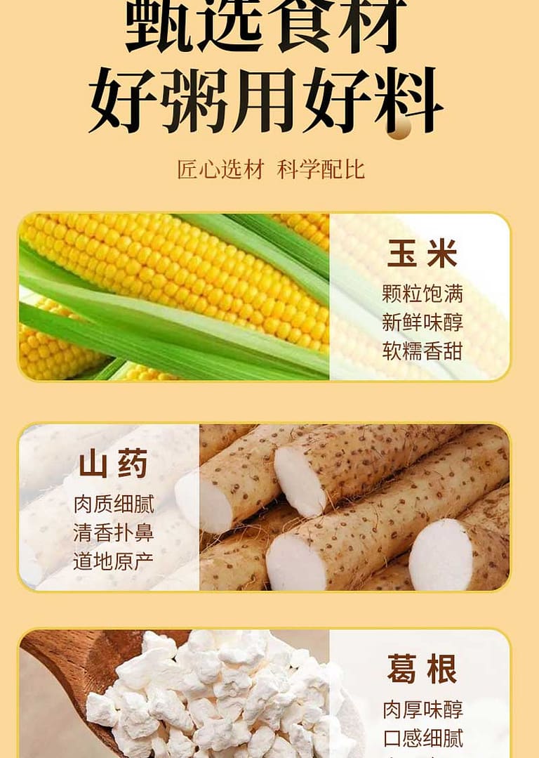 山药葛根玉米粉是一款天然健康的养生代餐粉,以药食同源理念精心调配而成。精选健脾益胃的山药、生津解肌的葛根,搭配富含膳食纤维的玉米,将三者研磨成细腻粉末,完美融合为一体。其富含蛋白质、维生素及多种矿物质,既能促进肠道蠕动、改善消化功能,又可补充身体所需营养。食用时只需以热水冲调,便能得到一碗口感绵密、麦香浓郁的养生糊。可根据个人喜好添加蜂蜜、坚果碎等,提升风味与口感。无论是忙碌清晨的便捷早餐,还是深夜加班的暖心加餐,山药葛根玉米粉都是营养健康的绝佳选择,为快节奏生活注入满满活力。