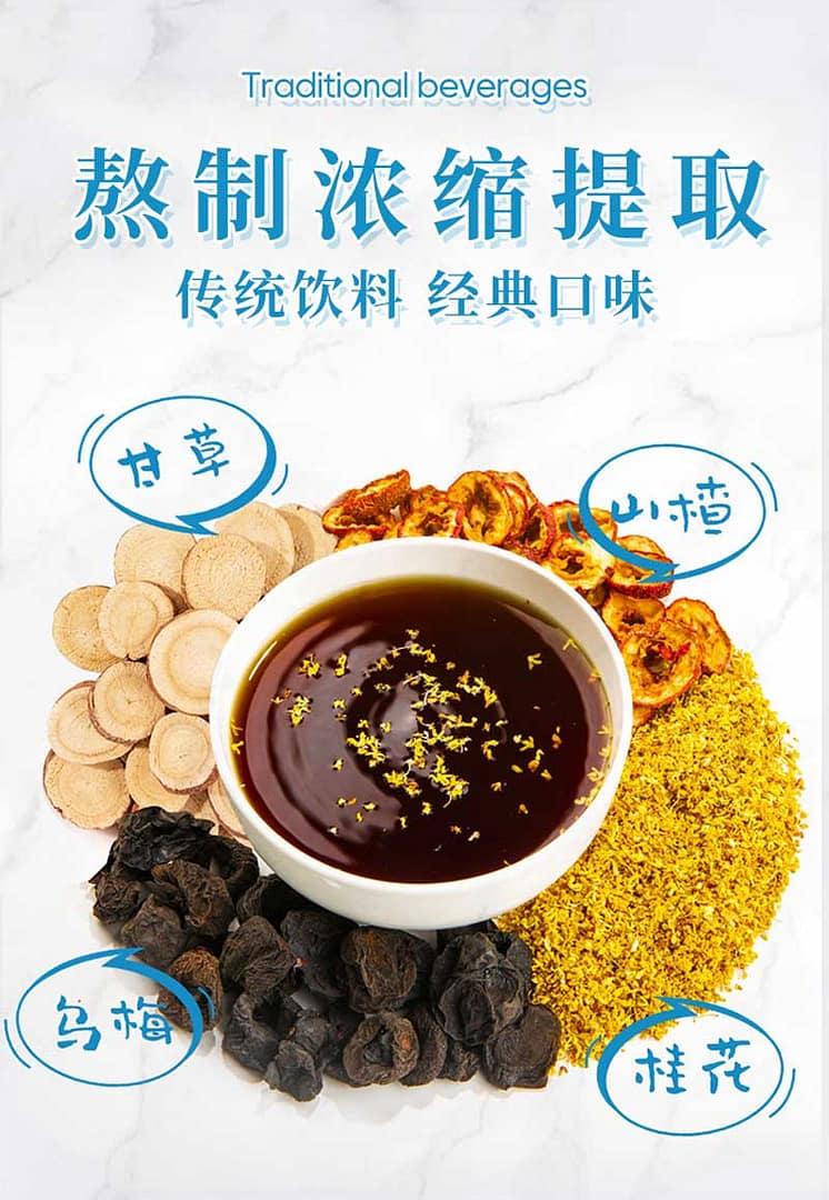 酸梅汤粉是中国传统的消暑饮料,制作原料主要有乌梅、山楂、陈皮、桂花、甘草、冰糖等。