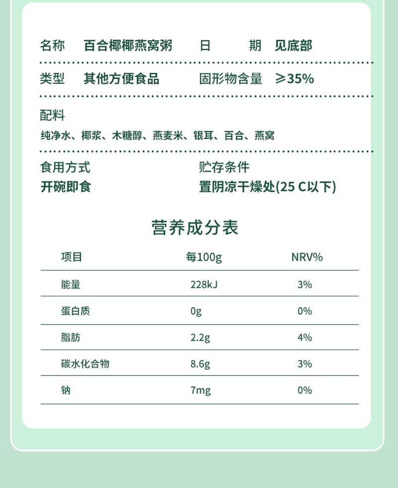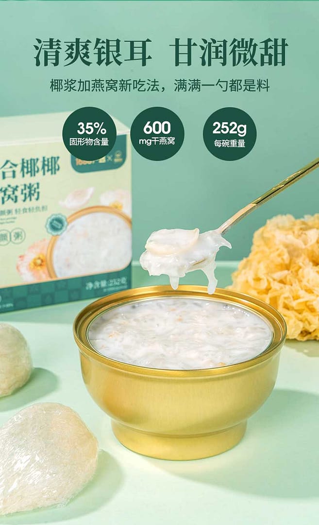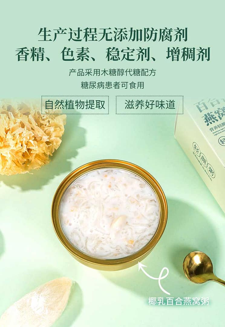 三者熬煮成粥,椰香裹挟着百合清香,燕窝软糯顺滑,口感层次丰富。