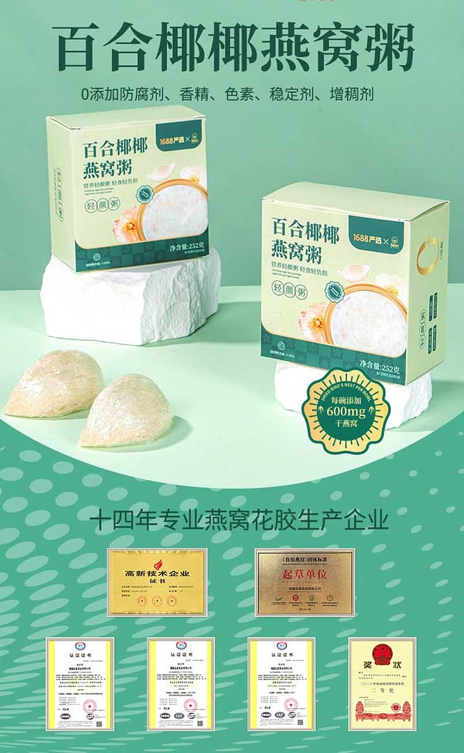 搭配高品质燕窝,丝丝分明,胶质满满,能滋阴润燥、养颜护肤。